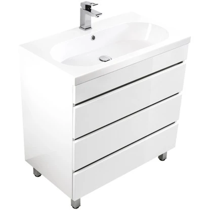 Nie haben klassischer Chic und deutsche Qualität so gut miteinander harmoniert wie im Stand Badmöbel Metis 70. Mit gleich 3 Softclose Schubladen, die sich grifflos perfekt in den Waschtisch einordnen, einer Färbung in klassischem Weiß und einer praktischen Größe für Ihr mittelgroßes Bad, sticht der Waschtisch des Badmöbels auf besondere Weise heraus. Das harmonisch geformte Mineralguss Waschbecken, außen mit einem auffälligen, breiten Rand, innen mit einer runden Aussparung versehen, geht ebenfalls in Weiß gefärbt mit der Zeit und unterstreicht nochmals die Moderne des Badmöbels. Lassen Sie sich vom Badmöbel inspirieren und bestücken beispielsweise den breiten Rand des Waschbeckens mit einer schicken Seife oder einer dekorativen Figur.