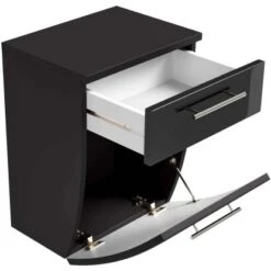 Das Badprogramm Salona überzeugt durch einen leicht geschwungenen Unterbau, sowie durch hochwertige Hochglanz MDF-Fronten.