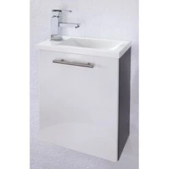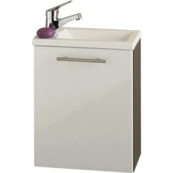 Die ideale Lösung für kleinere Gästebäder. Das 2-teilige Posseik Badmöbel-Set Alexo bietet Ihnen einen filigranen Handwaschplatz, der mit einem Mineralgussbecken und Hochglanz-MDF-Fronten zu überzeugen weiß.