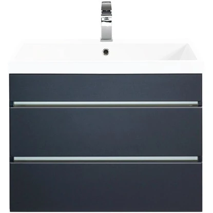 Der Posseik Waschplatz Amilia in Anthrazit ist die elegante Kombination aus Waschbecken und Waschbeckenunterschrank für Ihre Badezimmereinrichtung. Auf 60 cm Breite mit zwei Schubladen bietet sich ausreichend Stauraum für die täglichen Badutensilien.