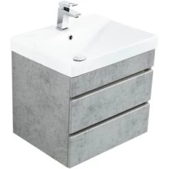 Der Posseik Waschplatz Amilia in Betonoptik ist die elegante Kombination aus Waschbecken und Waschbeckenunterschrank für Ihre Badezimmereinrichtung. Auf 60 cm Breite mit zwei Schubladen bietet sich ausreichend Stauraum für die täglichen Badutensilien.