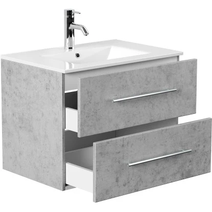 Das Waschbecken ist in einen praktischen Unterschrank eingefügt. Dieser führt die modernen, eckigen Formen des Beckens fort. Das Badmöbel verfügt über vier Schubladen mit Soft-Close-Systemen für schonenderes Schließen. Die Schienen verfügen über einen wEichen Vollauszug, der Ihnen dauerhafte Übersicht über die gesamten Schubladen ermöglicht. Der Waschbeckenunterschrank ist aus MDF gefertigt und in den Schubladen mit Weißem Melamin beschichtet. So ist er besonders feuchtigkeitsresistent und zudem leicht zu reinigen. Die Handgriffe sind aus matt gebürstetem Edelstahl. Mit seinen Maßen von 54 cm x 70 cm x 46 cm (H x B x T) erhalten Sie mit dem Homeline Waschbeckenunterschrank praktischen Stauraum für Ihr Badezimmer.Bitte beachten Sie, dass das Waschbecken auf den Unterschrank aufgesetzt wird und nicht zur Montage an der Wand vorgesehen ist. Ein Montageplan liegt bei.