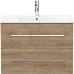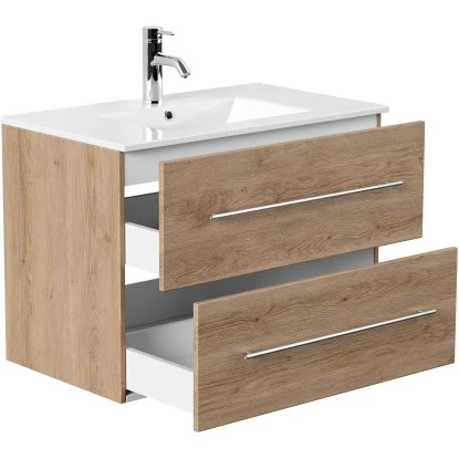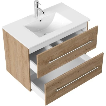 Das Waschbecken ist in einen praktischen Unterschrank eingefügt. Dieser führt die modernen, eckigen Formen des Beckens fort. Das Badmöbel verfügt über vier Schubladen mit Soft-Close-Systemen für schonenderes Schließen. Die Schienen verfügen über einen wEichen Vollauszug, der Ihnen dauerhafte Übersicht über die gesamten Schubladen ermöglicht. Der Waschbeckenunterschrank ist aus MDF gefertigt und in den Schubladen mit Weißem Melamin beschichtet. So ist er besonders feuchtigkeitsresistent und zudem leicht zu reinigen. Die Handgriffe sind aus matt gebürstetem Edelstahl. Mit seinen Maßen von 54 cm x 80 cm x 46 cm (H x B x T) erhalten Sie mit dem Homeline Waschbeckenunterschrank praktischen Stauraum für Ihr Badezimmer.