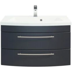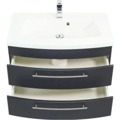 Doch auch mit Funktionalität kann der Waschplatz punkten. Der Waschbeckenunterschrank verfügt mit 2 Schubladen über viel Stauraum, wo Sie all Ihre Badutensilien bequem verstauen können. Die praktischen Soft-Close-Auszüge sorgen dabei für ein geräuschloses und sanftes Schließen der Schubladen. Die feuchtigkeitsresistenten Oberflächen können ganz einfach mit einem feuchten Tuch abgewischt werden. Das Waschbecken aus flexiblem Mineralguss überzeugt durch die gerade Linienführung und ist ebenfalls einfach zu reinigen.