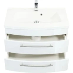 Doch auch mit Funktionalität kann der Waschplatz punkten. Der Waschbeckenunterschrank verfügt mit 2 Schubladen über viel Stauraum, wo Sie all Ihre Badutensilien bequem verstauen können. Die praktischen Soft-Close-Auszüge sorgen dabei für ein geräuschloses und sanftes Schließen der Schubladen. Die feuchtigkeitsresistenten Oberflächen können ganz einfach mit einem feuchten Tuch abgewischt werden. Das Waschbecken aus flexiblem Mineralguss überzeugt durch die gerade Linienführung und ist ebenfalls einfach zu reinigen.