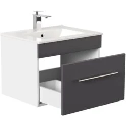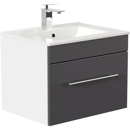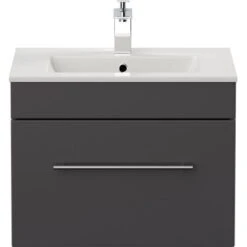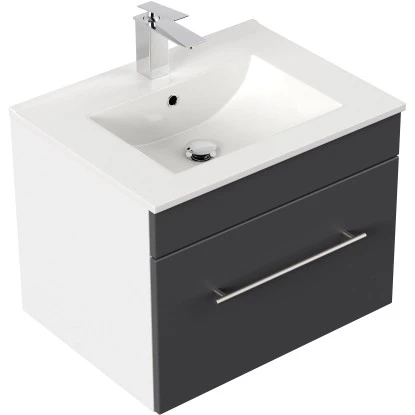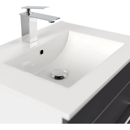 Das Badmöbel-Set Viva zeichnet sich durch modernes Design und hochwertige Qualität aus. Die Serie ist in verschiedenen Farben erhältlich und bietet tolle Kombinationsmöglichkeiten. Das formschöne Keramikwaschbecken ist pflegeleicht und wird einfach auf den Waschbeckenunterschrank aufgesetzt. Die Fronten der Möbel sind auch über die Kanten und Ecken mit einer hochwertigen Beschichtung versehen. Die weichen Kanten verleihen dieser Möbelserie eine schöne 3D-Optik. Der Korpus ist in Weiß matt gehalten während für die Fronten sowohl die Farben Weiß Hochglanz, Schwarz und Anthrazit als auch eine edle Betonoptik zur Auswahl stehen. Die Schubladen und ggf. Türen schließen mit der bequemen Soft-Close-Funktion und ziehen sich selbstständig auf den letzten Zentimetern sanft ein.