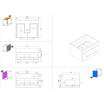 Nicht zum Lieferumfang gehören Armaturen, Zuleitungen zum Wasserhahn, der Waschbeckenverschluss Popup und der Syphon.