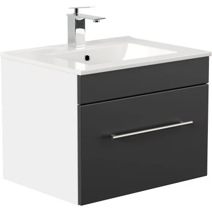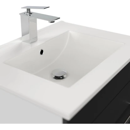 Das Badmöbel-Set Viva zeichnet sich durch modernes Design und hochwertige Qualität aus. Die Serie ist in verschiedenen Farben erhältlich und bietet tolle Kombinationsmöglichkeiten. Das formschöne Keramikwaschbecken ist pflegeleicht und wird einfach auf den Waschbeckenunterschrank aufgesetzt. Die Fronten der Möbel sind auch über die Kanten und Ecken mit einer hochwertigen Beschichtung versehen. Die weichen Kanten verleihen dieser Möbelserie eine schöne 3D-Optik. Der Korpus ist in Weiß matt gehalten während für die Fronten sowohl die Farben Weiß Hochglanz, Schwarz und Anthrazit als auch eine edle Betonoptik zur Auswahl stehen. Die Schubladen und ggf. Türen schließen mit der bequemen Soft-Close-Funktion und ziehen sich selbstständig auf den letzten Zentimetern sanft ein.