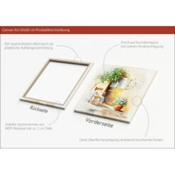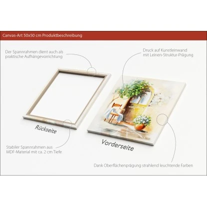 Das Pro Art Bild Canvas-Art Holiday Home II 50 cm x 50 cm garantiert ein trendiges Motiv. Es erstrahlt auf hochwertiger Kunstleinwand deren Oberflächenprägung mit Leinenstruktur die Farben regelrecht strahlen lässt.