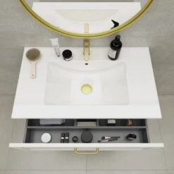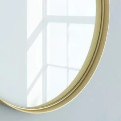 Der Spiegel verfügt über einen Metallrahmen, der in einer glänzenden Lackierung ausgeführt ist. Seine Abmessungen betragen 60 cm im Durchmesser und 4 cm in der Tiefe.