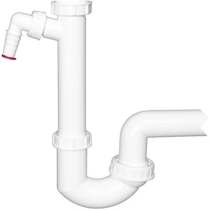 Der höhenverstellbare Röhrensiphon DN50 verfügt über ein Kugelgelenk sowie über einen ruckflussgesicherten Anschluss für Waschgeräte.