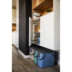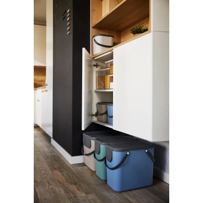 Der Rotho Mülleimer Albula Blau 25 l ist ein designorientiertes Recycling System. Albula bringt das Recycling auf das nächste Level. Dank der schönen und frischen Farben und der perfekt durchdachten Form, können die Eimer in der Küche genutzt werden, wo der meiste Abfall produziertwird. Aufgrund der Modularität und der Stapelbarkeit können mehrere Eimer aufeinander gestellt und dank der frontalen Klappe trotzdem ohne Probleme geöffnet werden werden. Die bequemen Griffe erlauben ein einfaches Tragen, so dass man die Eimer direktzur Recyclingstation mitnehmen kann. Anschliessend können die Eimer ganz einfach gereinigt werden. Sechs Verschiedene Aufkleber für die Vorderseite des Deckels helfen bei der Abfalltrennung.