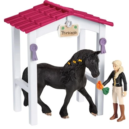 Die Pferdebox mit Horse Club Tori & Princess von Schleich® Horse Club ist der perfekte Rastplatz für Toris wunderschöne Friesen Stute Princess und bietet viele tolle Accessoires.