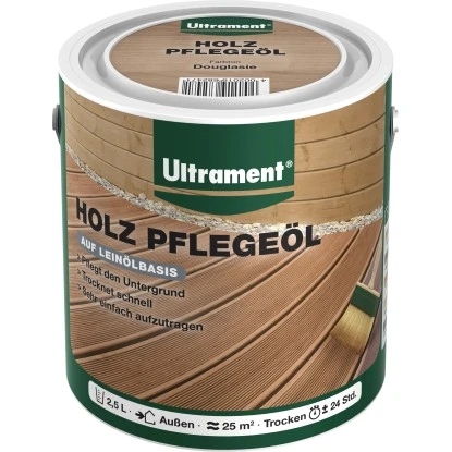 Das Ultrament Pflegeöl Holz ist ideal zur Auffrischung und Pflege von Hartholzuntergründen. Ultrament Holz-Pflegeöl dringt schnell in das Holz ein und schützt vor Vergrauung durch UV-Strahlung. Das Pflegeöl unterstützt die natürliche Holzoptik und durch die wasser- und schmutzabweisende Oberfläche wird Algen- und Grünbelag vorgebeugt.