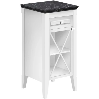 Der Villeroy & Boch Badschrank Hommage vereint klassische Designelemente mit gezielten Akzenten aus Marmor und Holz. Die attraktive Farbgestaltung, bestehend aus einer matt-weißen Front und einem Korpus mit alpinweißen Griffen, lässt den Seitenschrank zu einem stilvollen Eyecatcher avancieren.