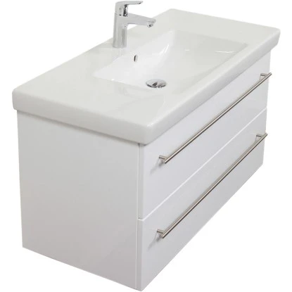 Durch die 2 Softclose Schubladen, bietet Ihnen der Waschtisch wertvollen Stauraum, der Ihnen beim Organisieren Ihrer Badartikel hilft. Die 2 Softclose Schubladen sind angenehm leichtgängig und dank des Vollauszugs haben Sie den Schubladeninhalt immer komplett im Blick. Volle Badregale, die bisher optisch für Unruhe im Raum sorgten, gehören so der Vergangenheit an. Noch dazu verfügt das Keramik Waschbecken selbst über zusätzliche Ablagefläche, was Ihnen bei der Morgenhygiene noch mehr Komfort erlaubt. So kann direkt auf dem Becken von der Zahnbürste bis zum Gesichtsreinigungsprodukt alles ordentlich abgestellt werden. Es ist sogar ausreichend Fläche vorhanden, um die Produkte von zwei Personen zu arrangieren. So kann sich jeder auf seiner Seite des Waschbeckens ausbreiten.