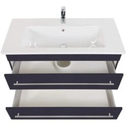 Das Badmöbel von Posseik in Anthrazit Seidenglanz überzeugt mit der Kombination eines hochwertigen Waschbeckens aus weißer Keramik von Villeroy & Boch. In ansprechendem Anthrazit gehalten passt dieses moderne Badmöbel hervorragend zu verschiedenen Badeinrichtungen. Aufgrund der hochwertigen Materialqualität profitieren Sie von optimierter Haltbarkeit und langer Lebensdauer.