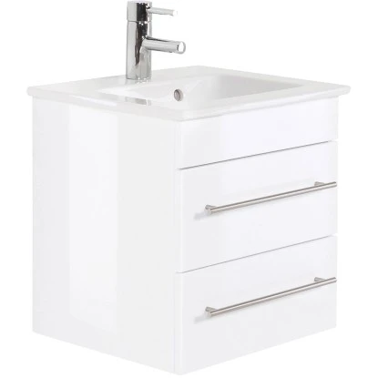 Das Badmöbel von Posseik in Weiß überzeugt mit der Kombination eines hochwertigen Waschbeckens aus weißer Keramik von Villeroy & Boch und ist aufgrund seiner kompakten Bauweise auch für kleinere Badezimmer oder Gästezimmer geeignet. In klassischem Weiß gehalten passt dieses moderne Badmöbel hervorragend zu verschiedenen Badeinrichtungen. Aufgrund der hochwertigen Materialqualität profitieren Sie von optimierter Haltbarkeit und langer Lebensdauer.