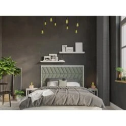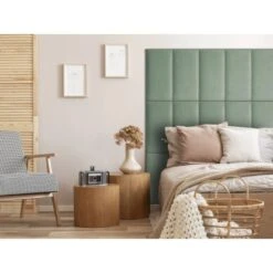 Das Wandkissen mit der Größe Rechteck 60 cm x 30 cm und dem Farbton Mint Samt ermöglicht eine individuelle Wandgestaltung in jedem Raum (auĂźer Feuchträumen). Das Wandpolster hat einen mit weichem Stoff ummantelten Schaumstoffkern, der auf einer MDF-Platte angebracht ist. Es ist in unterschiedlichen Formen, Stoffen und Farbvarianten erhältlich. Dadurch können vielfältige Kombinationen erstellt und die Wände geschmĂĽckt werden – ob als kleiner Farbakzent im Flur, als weiches RĂĽckenkissen im Esszimmer oder als groĂźflächige Wandverkleidung im Kinderzimmer. Der Fantasie sind keine Grenzen gesetzt. Die Textilpaneele können auch zum Polstern des Bett-Kopfteils benutzt werden. Zusätzlich können die Polster mit Knöpfen verziert werden, sodass ein trendiger „Chesterfield“-Look erzielt wird. Der Stoff lässt sich mit einem feuchten Tuch reinigen. Ebenfalls erhältliche, farblich abgestimmte Kissen und Vorhänge in denselben Materialien liefern ein stimmiges Gesamtergebnis. Zusätzlich sorgen die Wandpaneele fĂĽr mehr Geräuschdämpfung und verbessern somit die Raumakustik.