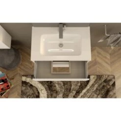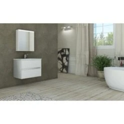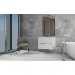 Der elegante Badmöbelunterschrank Laura besteht hauptsächlich aus PVC-foliiertem MDF-Holz, welches mittels deutscher Technologie verarbeitet wurde und somit einem sehr hohen Qualitätsstandard entspricht. Die Korpusstruktur der Kollektion Laura besteht aus einem gefalten montierten Element, wodurch eine solidere Struktur und dadurch eine noch höhere Widerstandsfähigkeit gegen das Eindringen der Feuchtigkeit entstanden ist, was somit eine längere Lebensdauer des Möbels garantiert. Der Waschbeckenunterschrank ist mit dem passenden Keramikbecken sowie einem Spiegelschrank dieser Kollektion ergänzbar.