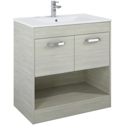 Der Waschbeckenunterschrank Zen ist ein schlicht gehaltener Schrank, der in vier attraktiven Dekoren erhĂ€ltlich ist. Durch sein klassisches Design und die ansprechende Optik ist er eine formschöne ErgĂ€nzung in jedem Bad. Zen besitzt zwei SchranktĂŒren, ein Abstelfach und verchromte Metallgriffe, die das Gesamtbild abrunden. Er ist zur einfachen Selbstmontage geeignet und mit dem ebenfalls erhĂ€ltlichen, nicht im Lieferumfang enthaltenen Waschbecken und Spiegel, schaffen Sie einen harmonischen Gesamteindruck in Ihrem Bad.