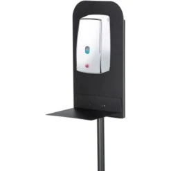 Der Desinfektions-Ständer ist aus hochwertigem, rostfreiem Edelstahl gefertigt und aufwendig im angesagten Schwarz lackiert.