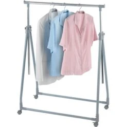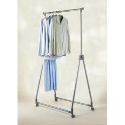 Der klappbare Kleiderständer von Wenko eignet sich ideal zum platzsparenden Aufbewahren, Lüften und Transportieren von Kleidung. Durch seine Höhenverstellbarkeit von 99 cm bis 168 cm kann er variabel zum Aufhängen von Hemden ebenso wie Mänteln eingesetzt werden. Dank der vier Rollen ist er beweglich und flexibel. Er verfügt über eine Tragkraft von bis zu 40 kg. Zudem lässt sich der Kleiderständer nach Gebrauch zusammenklappen und platzsparend verstauen.