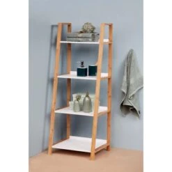 Das moderne Standregal Finja bietet mit seinen vier Regalböden viel Platz für Handtücher, Bücher, Küchenutensilien, Accessoires und Dekoration. Egal, wo Sie das charmante Haushalts- und Badregal platzieren, ob im Bad, Schlafzimmer, Flur, in der Küche oder im Wohnzimmer das praktische Regal macht immer eine gute Figur und ist vielseitig einsetzbar.