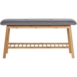 Die bequem gepolsterte Sitzfläche in Grau besteht aus pflegeleichtem Polyester und eignet sich ideal zum An- und Ausziehen von Schuhen. Sie können Ihre Schuhe einfach auf die darunter gelegene Ablage stellen oder wieder entnehmen, wenn Sie diese tragen möchten. Die praktische Ablage bietet Platz für 4 Paar Schuhe. Mit der Schuhbank haben Sie nicht nur ein praktisches Schuhregal, sondern auch einen Blickfang für Ihr Zuhause.