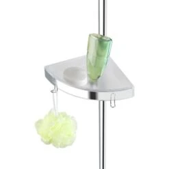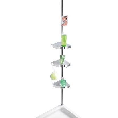 Das Regal bietet mit drei höhenverstellbaren Ablageflächen aus hochwertigem Kunststoff viel Platz für Duschgels, Shampoos, Seifen, Schwämme oder andere Bad-Accessoires. Die Blenden an der Vorderseite der drei Ablagekörbe sind aus rostfreiem Edelstahl und geben dem Duschregal einen eleganten Look. Die Eckablagen verfügen über großzügige Löcher für kopfüber aufbewahrte Shampoos. Zugleich dienen die Löcher als Wasserablauf.