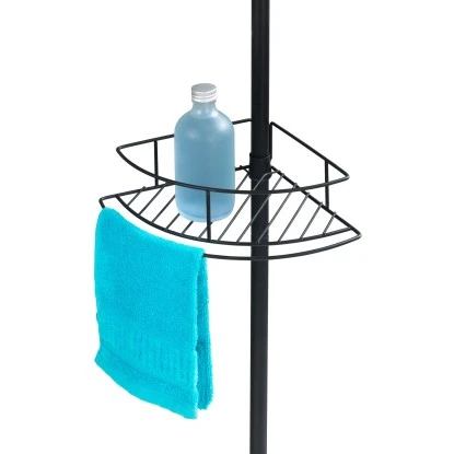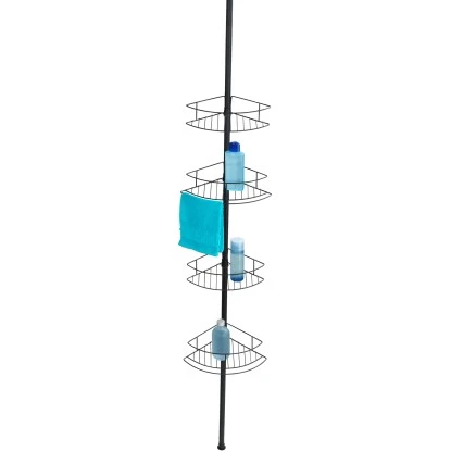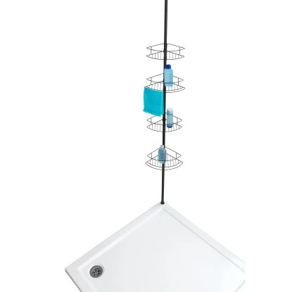 Das praktische Eckregal bietet mit vier Drahtkörbchen zahlreiche Abstellmöglichkeiten für Shampoo, Duschbad, Seife, Schwamm und andere Badeutensilien. Zwei Körbe haben eine zusätzliche Halterung, um Waschlappen einzuhängen.