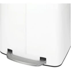 Der hochwertige und trendige Tret-Mülleimer aus der Serie Primo von Wenko ist aus weiß lackiertem Stahl hergestellt. Die satinierte Oberfläche und die schöne Form verleihen dem Abfalleimer eine edle Optik. Ausgestattet mit der Wenko Easy-Close-Absenkautomatik schließt der Deckel ganz sanft und leise ohne lautes Aufknallen. Durch seine Tretfunktion mit extra großem Pedal kann der Eimer ohne einen Handgriff leicht geöffnet werden und schließt wieder von selbst. Der Deckel lässt sich im offenen Zustand praktisch feststellen. Der Abfalleimer ist mit einer Anti-Fingerprint Beschichtung ausgestattet. Diese lässt Fingerabdrücke auf der mattierten Oberfläche fast unsichtbar erscheinen. Der Tret-Mülleimer Primo hat ein Fassungsvermögen von 2 x 20 l und ist ideal als Abfalleimer in Küche und Haushalt, sowie auch im Badezimmer einsetzbar. Besonders clever: Mülltrennung inklusive. Dank der beiden Behälter mit jeweils 20 l Fassungsvermögen wird das Recycling zum Kinderspiel, die Farbmarkierung erleichtert das Sortieren, z.B. nach Papier und Plastik.