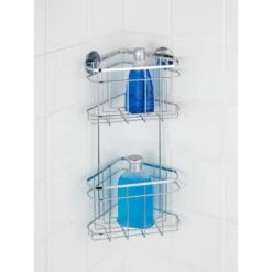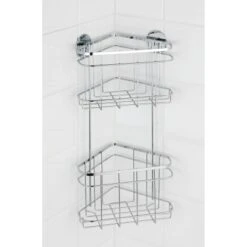 Das Wenko Turbo-Loc Eckregal mit 2 Etagen ist aus hochwertigem glänzendem Edelstahl gefertigt und bietet Badutensilien, dank der hohen Körbe einen sicheren Stand.