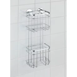 Das dekorative Turbo-Loc Wandregal ist sehr edel im Design durch sein hochwertiges, glänzendes und rostfreies Edelstahl. Auf der Wandablage mit zwei Etagen können jede Menge Bad- und Pflegeutensilien übersichtlich aufbewahrt werden. Besonders praktisch: Die beiden hohen Körbe bieten sicheren Stand für Shampoo, Duschgel, Körperlotion und Co.