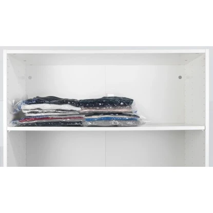 Wenn der Platz mal wieder knapp bemessen ist, muss die Luft aus dem Kleiderschrank weichen. Mit dem Platzsparwunder Vakuum Aufbewahrungssystem von Wenko löst sich das Platzproblem im Handumdrehen. Einfach die gewünschten Kleidungsstücke hineinlegen, verschließen und mit Hilfe des Staubsaugers die Luft durch das Blitz-Ventil absaugen. Spielend leicht wird bis zu 75 % mehr Platz gespart.
