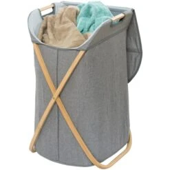 Der stabile Wenko Wäschesammler Bahari besteht aus hochwertigem Bambus und bietet mit 79 l Fassungsvermögen jede Menge Platz für Ihre Wäsche bis zum nächsten Waschgang. Der Deckel verhindert das Rausfallen der Kleidungsstücke und schützt vor unerwünschten Blicken ins Innere. Doch auch optisch kann der Wäschesammler überzeugen und wird in jedem Ihrer Räume, ob im Badezimmer, im Schlafzimmer oder im Wäschekeller zu einem Hingucker. Der schöne, graue Wäschesack besteht aus einem pflegeleichten Polyester/Baumwollgemisch. Bei Nichtgebrauch kann der praktische Sammler einfach zusammengefaltet und platzsparend aufbewahrt werden.