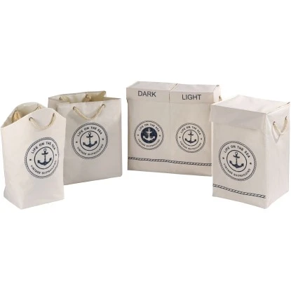 Der Sammler wurde aus Polyester und PP Faserstoff hergestellt. Diese hochwertigen Materialien sichern die hohe Reißfestigkeit und ermöglichen eine schnelle und problemlose Reinigung des Wenko Wäschesammlers. Diese mobile und faltbare Wäschetruhe kann dank der geflochtenen Tragegriffe, sowohl leer als auch gefüllt, problemlos zur Waschmaschine transportiert werden. Die Griffe und der Wäschesammler selbst präsentieren sich in einem trendigem maritimen Stil in elegantem beigem Farbton. Für alle, die bereits einen Wäschesammler haben, bietet der Wenko Sammler sich auch alternativ als Shopper für Ihre Einkäufe an. So können selbst große Einkäufe sicher und dekorativ im Auto und im Einkaufswagen transportiert werden.