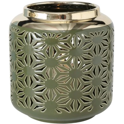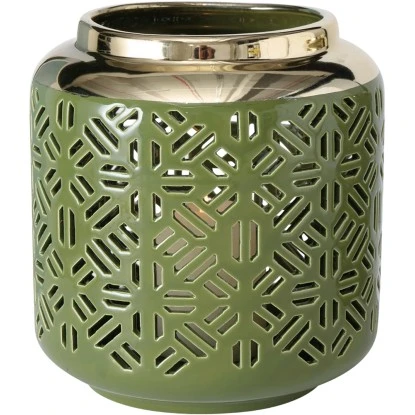 Das Windlicht Faise ist ein echter Hingucker. Ein tolles Deko-Highlight, das an den schönsten PlĂ€tzen im Innenbereich die passenden Akzente setzt. Mit seiner Farbwelt in DunkelgrĂŒn, Gold, OlivgrĂŒn liegt dieser Artikel voll im Trend. Der Produktstil ist modern und ebenso zeitlos, wie die verwendeten Materialien.