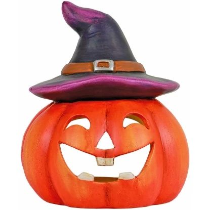 Das Windlicht Kürbishexe lässt sich ideal als Dekoration für Halloween verwenden. Mit seinem ansprechenden Kürbis-Design ist es ein echter Hingucker. Neben einem geschnitzten Gesicht fällt der Teelichthalter durch einen gebogenen Hexenhut auf. Hergestellt ist es aus formstabiler Keramik. Nach dem persönlichen Geschmack lässt sich das Windlicht im Innen- oder Außenbereich dekorieren. Seine Gesamtmaße betragen 21 cm x 21 cm x 17 cm (H x B x T).